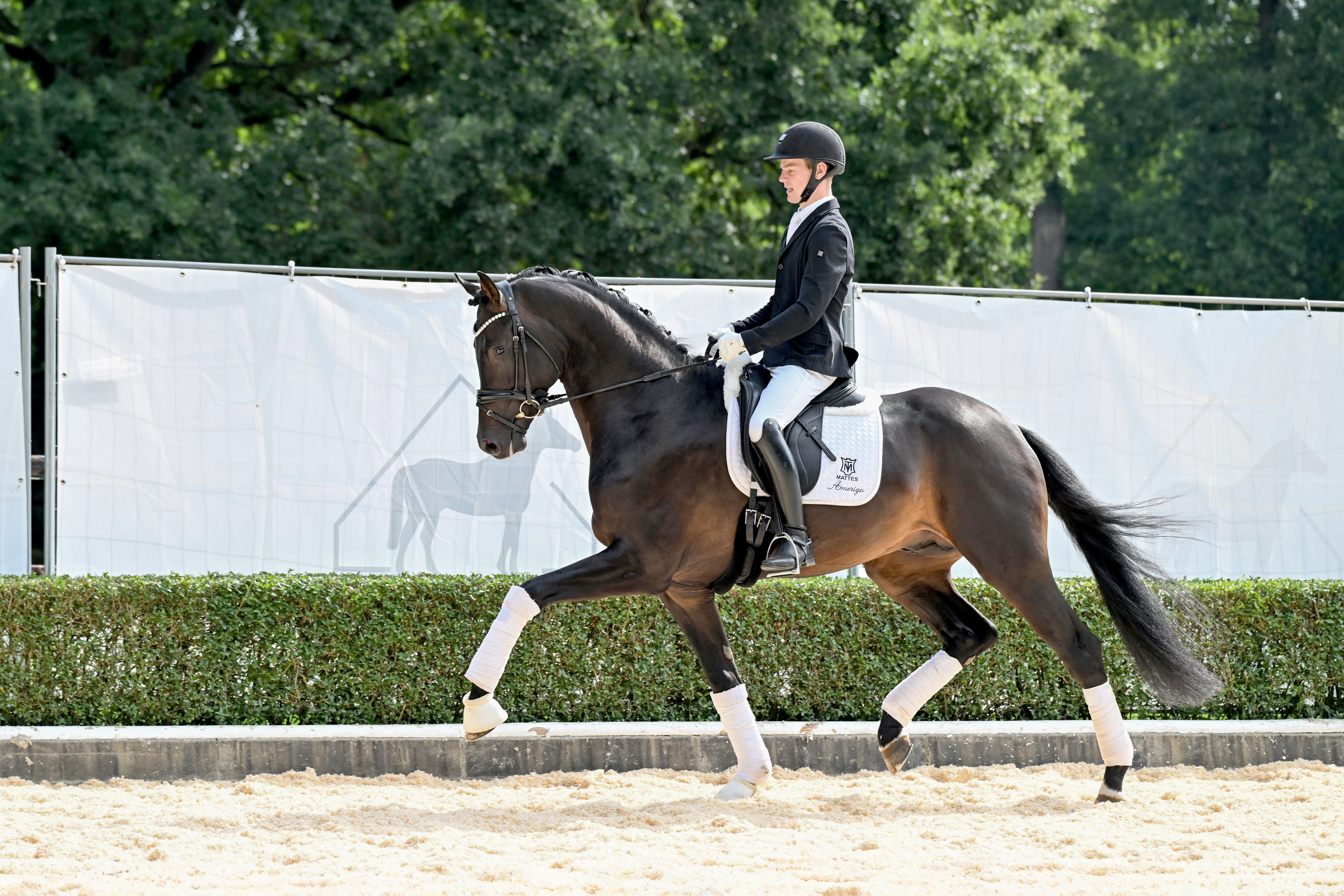 Vater Zuperman, Dritter der Weltmeisterschaft für junge Dressurpferde 2023, ist mittlerweile selbst bis zur schweren Klasse erfolgreich.